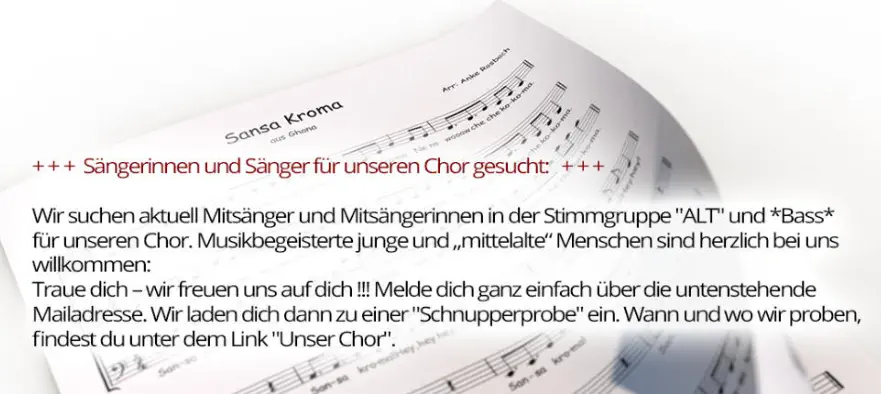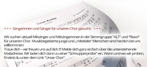 Für jede Stimme (Alt, Bass, Sopran, Tenor) gibt es einen Ansprechpartner bzw. eine Ansprechpartnerin. Wer doch einmal oder über